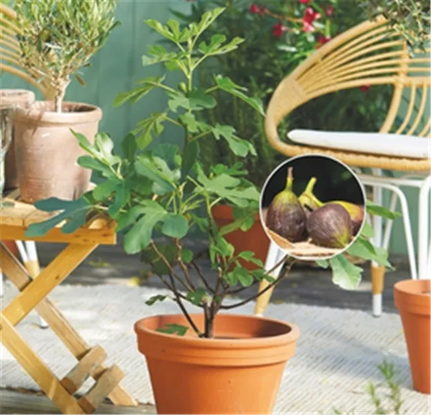 Silbrig schimmernde Blätter, markante Kronen und eine ruhige Präsenz: Das OLIVEN-STäMMCHEN (Olea europaea), der FEIGEN-BUSCH (Ficus carica) und der EUKALYPTUS-BUSCH (Eucalyptus gunnii) verleihen der Terrasse jene Gelassenheit, die man sonst aus südlichen Regionen kennt. Die Olive gilt seit Jahrhunderten als Symbol für Beständigkeit, Feigen zählen zu den ältesten Kulturpflanzen, und der Eukalyptus-Busch verströmt an warmen Tagen sein charakteristisches Aroma. Seine silbrigen Blätter enthalten übrigens besonders viele ätherische Öle, die sich bei Wärme intensiver entfalten. Viel Licht, ein warmer, geschützter Platz und gut drainiertes Substrat sind entscheidend, denn anhaltende Nässe im Wurzelbereich vertragen die drei Schönheiten nicht.